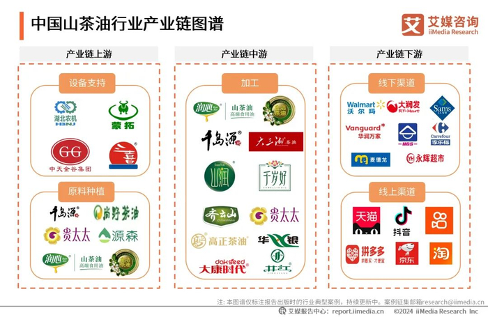 随着消费者对高档优质食用油的需求提升,茶油作为健康食用油的代表,其市场需求持续增长,iiMedia Research(艾媒咨询)数据显示,消费者购买山茶油的原因主要基于其营养价值高(62.3%)和更健康(55.6%)的特点。目前,山茶油行业正逐渐从传统的小规模生产向品牌化、规模化发展,一些知名品牌例如“润心”、“千岛源”、“金浩”逐渐在市场上占据主导地位。