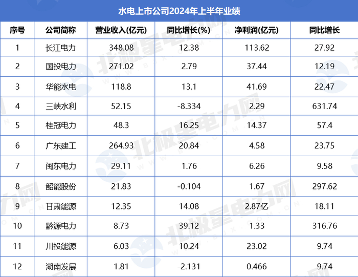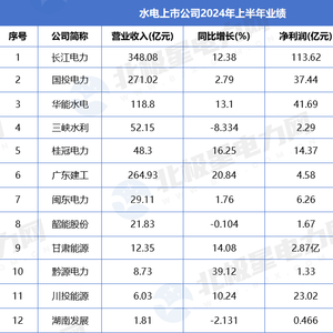 12家水电企业上半年业绩披露!长江电力净赚110多亿!