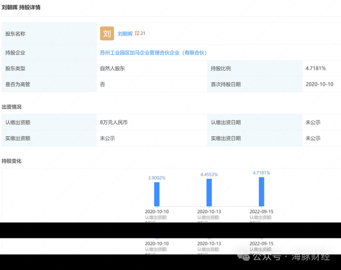 海豚财经注意到,刘朝晖2020年10月10日入伙苏州工业园区加马企业管理合伙企业;一个月后,刘朝晖斥资3000万元接盘孙洁晓在众捷汽车的部分持股。