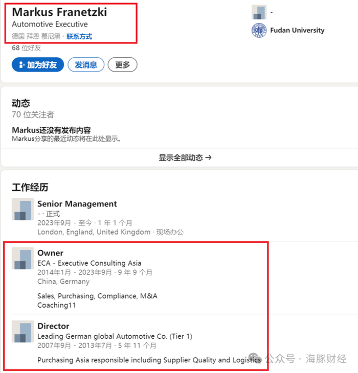 海豚财经记者委托德国朋友查询,众捷汽车的上述披露存在多处虚假信息。例如,Markus在Facebook和Linkedin上对外展示的个人简历显示,他2007年9月—2013年7月在洱亚太集团上海子公司的职位是“采购总监”,主要负责亚洲区域采购,包括供应商质量和物流事务。