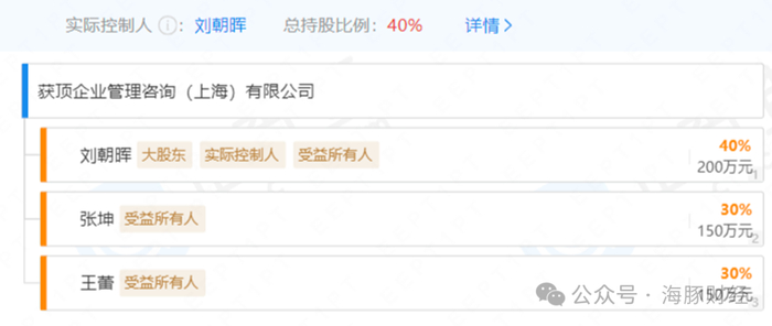 企查查显示,获顶企业管理咨询(上海)有限公司为上海获坤企业管理咨询合伙企业的执行事务合伙人,获顶企业背后实际控制人为威马汽车创始人沈晖(SHEN HUI,2021年之前曾担任公司执行董事兼总经理)。获顶企业的股东包括刘朝晖(40%)、张坤(威马汽车首席投资官,持股30%)、沈晖的妻子王蕾(30%)。