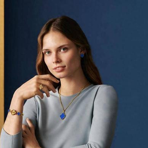 今年,世家以璀璨的玑镂雕花黄K金结合色彩深邃的蓝玛瑙,装点于Sweet Alhambra腕表和Vintage Alhambra可翻转戒指之上,与镶嵌蓝玛瑙的吊坠和耳环共同构筑系列的优雅新姿。
