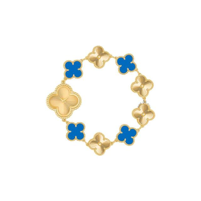 继1989年首次于Alhambra四叶幸运系列镶嵌蓝玛瑙,在无瑕净度、鲜明色彩和光泽表面三方面均表现优异。为缔造和谐圆融的效果,工匠悉心配对每一枚四叶幸运主题图案。宝石的透明度呈现出天然的微妙差异,赋予作品独一无二的魅力。每枚主题图案均以金质圆珠饰边围拢,烘托璀璨的玑镂雕花黄K金与深邃的蓝玛瑙所构成的鲜明对比。