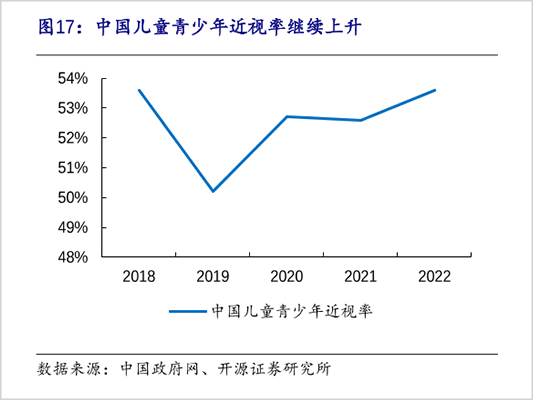 与此同时,儿童青少年近视率高发且持续上升,但我国医疗服务覆盖率仍偏低,尤其是县域等下沉市场医疗服务不完善,巨大的需求没有被满足,市场尚未被充分发掘。