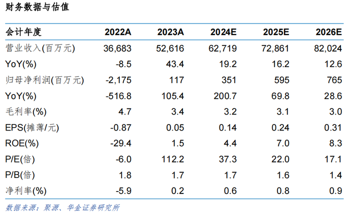 事件:2024年上半年公司实现营业收入308.58亿元,同比增长40.33%;归母净利润1.83亿元,同比下降35.74%;不分红,不转增。