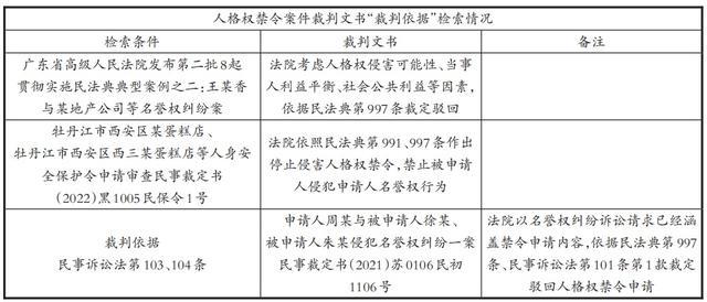 表1 人格权禁令案件裁判文书“裁判依据”检索情况