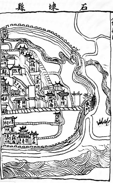 明朝嘉靖年间修《石埭县志》中的“石埭县志图”。