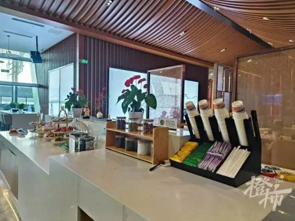 记者注意到,周围大概一半的乘客会取用一两样零食及饮品,一半的只是取用了饮品。记者取了一瓶矿泉水、一杯菊花茶及一袋三色豆。商务候车厅客人流转也很快,10多分钟后,大约一半客人离开。