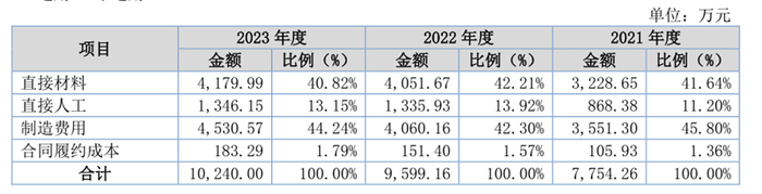 2021年-2023年,林泰新材的主营业务的营业成本分别为7,754.26万元,9,599.16万元和1.02亿元。2023年公司主营业务收入增长近20%的情况下,营业成本仅增长6.25%。