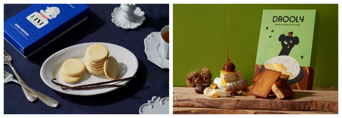 西式点心区有阪神梅田总店限定的品牌,包括人气的甜品店,还有活用日式食材的面包店等品类齐全。特别推荐的是以“香草”为主题的甜点品牌“VANI”家的薄烤香草夹心饼干(如图左)。还有以蜂蜜和奶酪为主题的甜点品牌“DROOLY”家的季节限定·阪神梅田总店限定的“费南雪”(栗子&卡门贝尔奶酪&蜂蜜)等秋季人气甜点也将登场(如图右)!