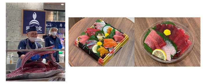 生鲜区则是百货店最接地气的区域,不仅食材新鲜且品类齐全,宛如市场一样的气氛,热闹非凡!鲜鱼卖场的“阪神HIGESADA”和“鱼组”还为国庆节期间来大阪的游客们推出了限定商品,金枪鱼等各种人气生鱼片、寿司、盖饭等一应俱全,让人每天都想来一趟!另外,10/2(周三)14点~在“阪神HIGESADA”将举行一场金枪鱼解体表演秀,可以现场观摩到匠人熟练处理金枪鱼的场景,而且人气部位和稀有部位还会现切现卖!能“现场观摩金枪鱼解体”真的是很难得的体验,国庆大阪旅行时一定要来看看哦!