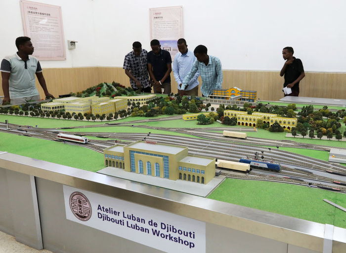 2022年9月19日,在位于吉布提首都吉布提市的吉布提工商学校,学生在鲁班工坊铁道运营沙盘教学区学习。新华社记者 董江辉 摄