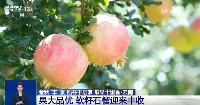 在云南,近期,软籽石榴成熟上市。今年软籽石榴不仅迎来了丰收,有的地方还办起了“石榴王”的评比活动。