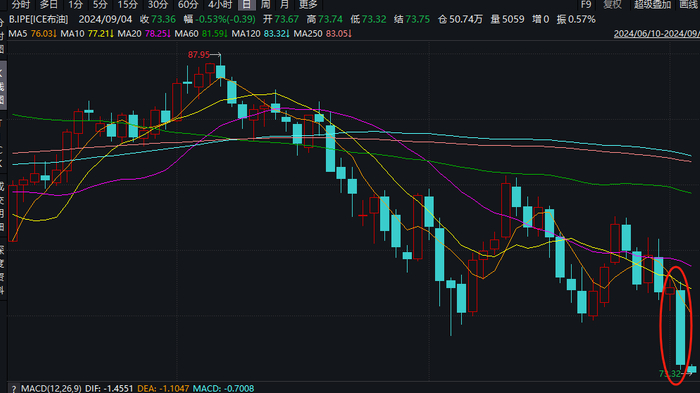 此外,大宗商品市场也剧烈波动,国际原油近日也出现暴跌,其中9月3日布油期货一度暴跌超5%。