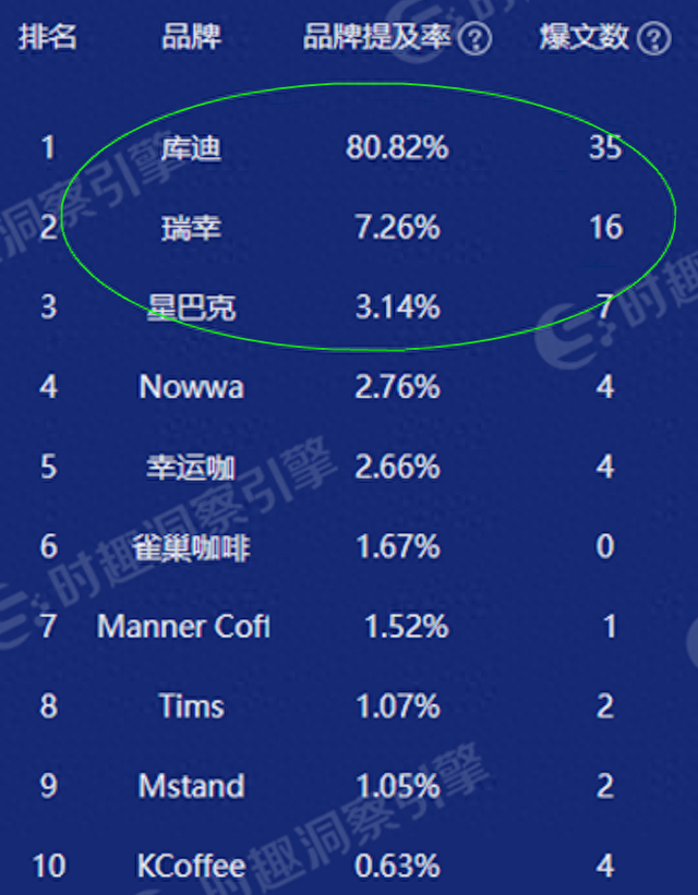 高举高打的库迪咖啡,自然也获得了最多的市场关注度。此前,时趣洞察引擎公布的数据表明,在今年推出果咖产品的咖啡品牌中,库迪咖啡占据了80%以上的果咖声量。