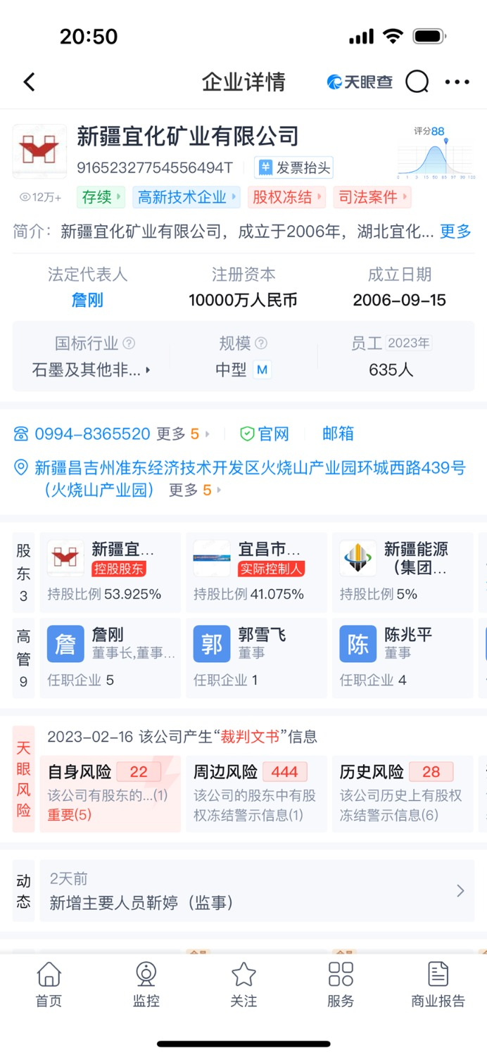 天眼查显示,新疆宜化矿业第二大股东已变为宜昌市国资委