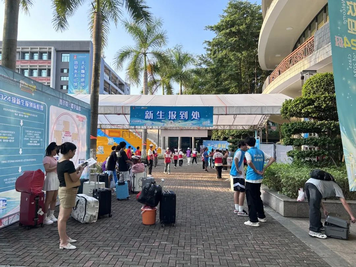 在高铁清远站和广清城际清城站,该校均设有接待点和岭南专车接站。在新生报到处,师生志愿者们热情为新生做好注册缴费、户籍咨询、绿色通道办理、医疗服务等一体化保障,为来自五湖四海的2024级新生们带来一场亲切、高效的入学体验。