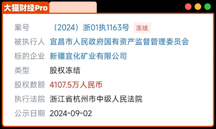 不过有意思的是,9月2日,杭州中院把不久前刚划到宜昌国资委的这4107.5万股权给冻结了。