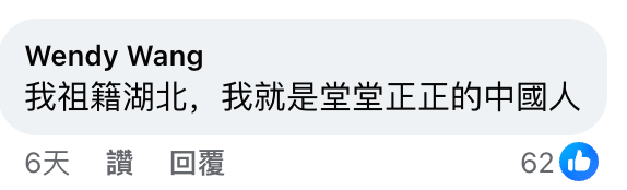 脸书粉专“不演了新闻台”也发文表示:“我跟林依晨一样,爷爷都是成都人,我也是成都人!那个年代,一个四川小伙子颠沛流离,保护家人,远渡重洋,安身立命,开枝散叶。这种祖上,我骄傲都来不及,大声说出来有什么问题?在文化认同上,我是当然的中国人,又有什么问题?”