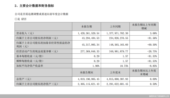 普瑞眼科净利下滑的幅度最大。财务数据显示,今年上半年,普瑞眼科实现的营业收入约为14.2亿元,同比增长3.08%;对应实现的归属净利润约为4329万元,同比下降81.56%。