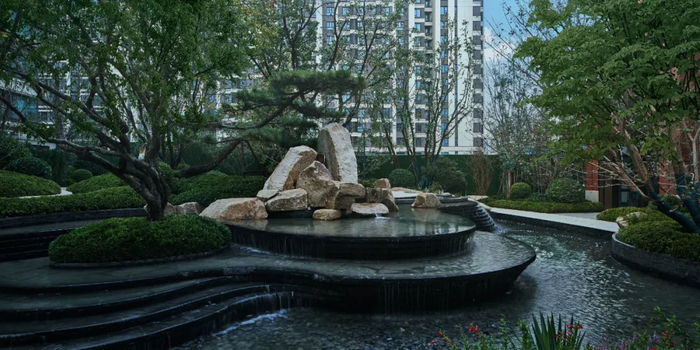 在园林设计中,国贤府惯用大面积水系呈现国人的独有山湖情怀,但这次,京华国贤府并没有运用这种设计,而是将水系分割为更多的“叠山叠水”穿插在整个园林的景观之中。