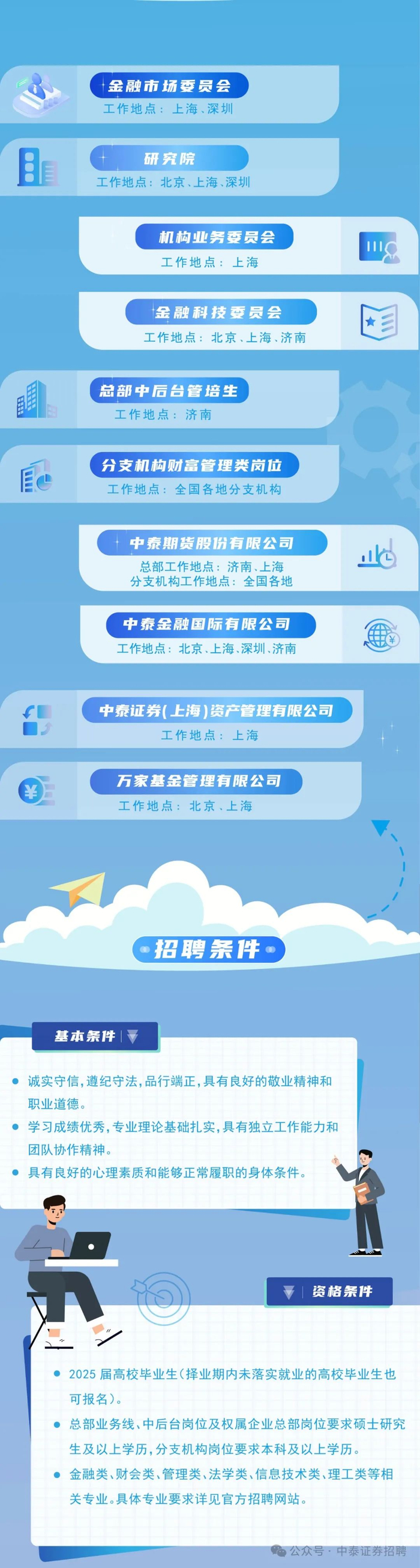公司2025届秋季校园招聘已启动,可登录中泰证券官方网站或“中泰证券招聘”官方号投递简历,投递日期截至9月22日。也可以直接邮件我简历1295772064@qq.com