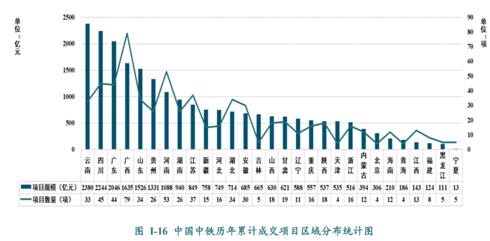 而中西部也是大基建占比比较高的地方,就以中国中铁的投资分布区域来说,云南、四川是前两名。