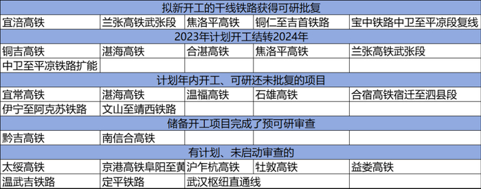 拟新开工的铁路变少,有些甚至纳入开工计划没有进展。