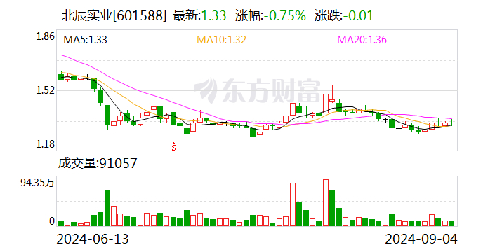 北辰实业:融资净偿还5.39万元,融资余额1.81亿元(09-04)
