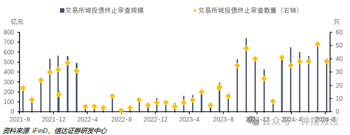 8月交易所终止审批规模环比有所减少。8月交易所终止审批城投债共38只,终止审批数量较上月的51只有所减少,终止审批拟发行规模531.11亿元,较上月减少171.72亿元。