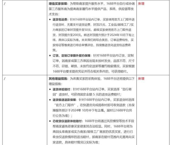 1688发布《买家保障服务升级公告》:全面支持退货包运费,调整仅退款规则