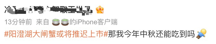有网友表示:“每年就等着这个时候吃大闸蟹呢,怎么突然说要推迟上市了?”