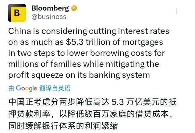 上周五彭博社引消息人士,说中国正考虑进一步下调存量房贷利率,允许存量房贷寻求转按揭。昨天彭博再次将消息细化,说金融监管机构已提议将存量房贷利率共计下调80个基点左右,首次下调在未来几周内,第二次下调将于明年年初,首套和二套房都适用。