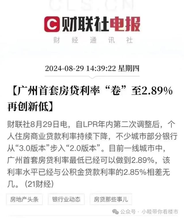 广州房地产市场传来了一个大消息:当地的商业贷款利率已经下调到了2.89%,商业银行贷款利率已“逼近”公积金利率。