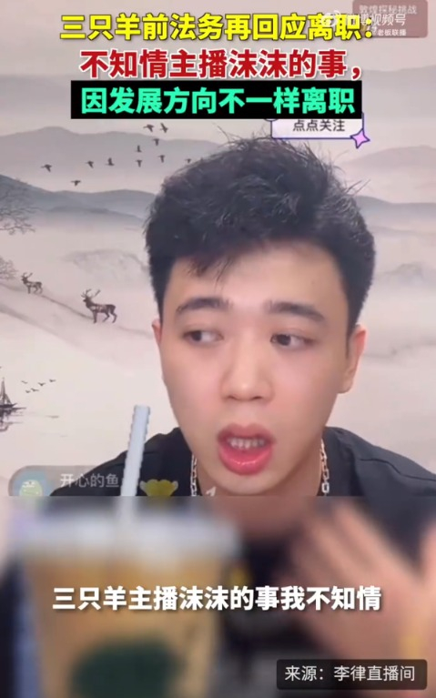 据东方财经,9月4日晚,三只羊前法务李律直播时再回应离职原因。针对网传李律离职和三只羊主播沫沫有关言论,李律称离职是因个人和公司发展方向不一样。“有人说我把她(主播沫沫)怎么着之后再离职,完全没有。这个事情一我不知情,二我没参与。从我是当事人角度而言这是谣言,我需要去澄清。”李律说。