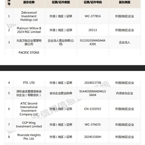 持股超12%的第四大股东为Platinum Willow B 2024 RSC Limited,是阿布扎比投资局旗下关联投资公司,认缴金额为488850.178万元;
