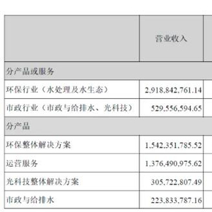 公司根据项目与收入类型,主要业务分为环保整体解决方案、运营服务、市政与给排水工程以及光科技整体解决方案。其中,环保整体解决方案收入主要包括直接膜与设备销售收入、各类水务及盐湖提锂等业务项下的膜及设备、吸附材料销售与相关EPC收入等;公司运营服务收入主要包括项目公司自主运营PPP/BOT/ROT项目收入及委托运营的收入等;市政与给排水工程收入主要包括EPC项目中土建与安装工程收入;光科技整体解决方案主要涵盖城市大型滨水夜游项目、知名景区夜游项目、城市文化旅游夜景观光带、光影文旅产品及解决方案服务、智慧城市照明产品及解决方案服务和智慧家居产品及解决方案。