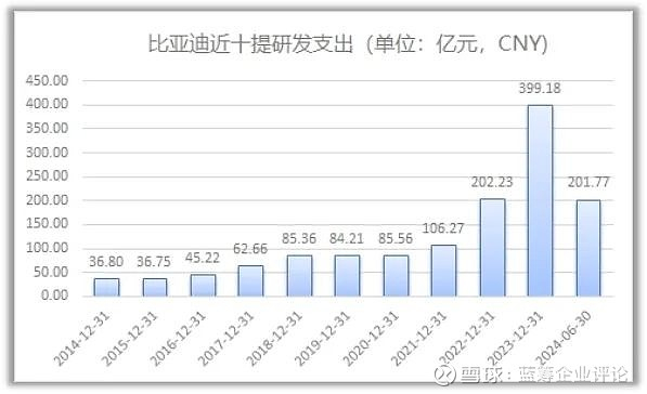 比亚迪今年上半年的研发费用巨额投入创下历史新高,A股之最!研发支出高达201.77亿元,同比增长41.64%。根据我们对历史数据梳理,比亚迪这方面累计投入近1500亿元。