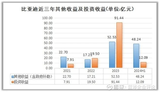 实际上,比亚迪上半年的净利润比去年同期增加了27亿,“其他收益”就贡献了30亿,其中政府补助占了一半(15亿),另外15亿公司没说(这个数字很大,没说是不是不太合理)。