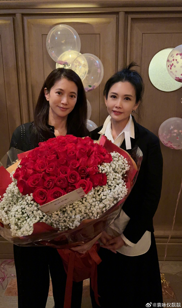 演员袁咏仪晒53岁庆生照!56岁邱淑贞久违露面与其捧花合照,网友:还是那么美