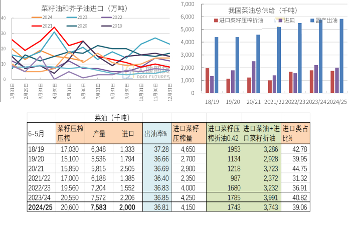1.进口和国产压榨产菜油