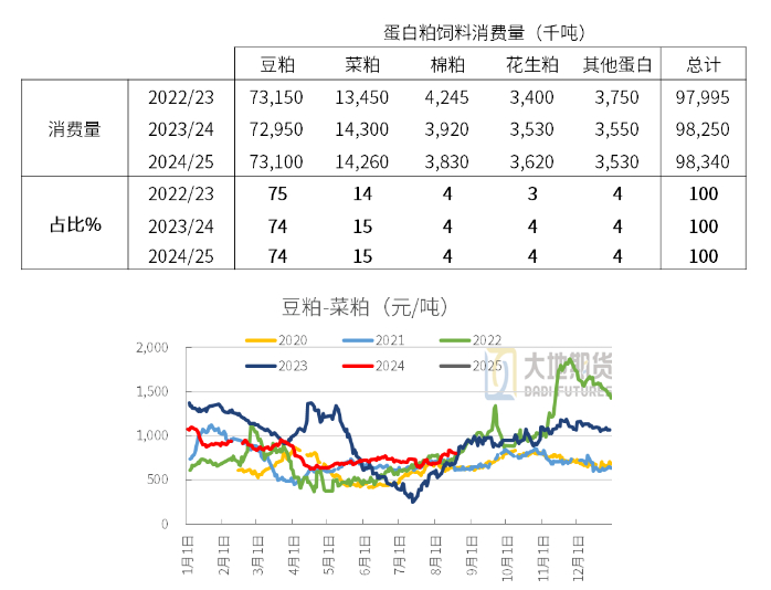 2.蛋白粕消费和豆菜粕价差