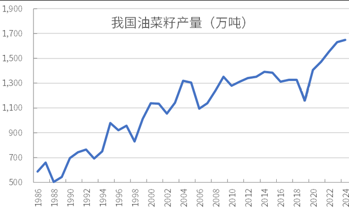 注:统计局显示,2023年国产菜籽产量约1632万吨,国粮中心预估2024年产量1650万吨,与市场预期有偏差。