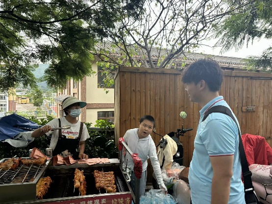 2024年8月10日,来自河海大学农工院的“彝海盟约,长征新途”调研团在肖文婷主席的带领下,参观了大石板村一期工程。走在绿荫庇护的石板小道上,道路两旁是各色的小摊子,一阵阵绵绵的茶香从古香古色的老建筑丛中飘来,远处是整齐排布的宅基地和大片大片的葡萄、向日葵……再往深处走,在大石板村的土路上,两侧都是石头泥巴砌成的土房子,一些改成了餐馆、旅社和小商店,另一些有小院子的老房子改成了茶舍和民宿。沿道的摊贩向我们介绍,原先的大石板是一个以农耕为主捕鱼为辅的小村落,直到2018年,四川省的两项改革推进,加上2022年疫情结束,旅游业回暖,大石板村才有了现在的模样。当地居民除了做点小生意和在宅基地种些蔬菜瓜果外,还会定期举办音乐节、篮球赛、篝火晚会等丰富多彩的活动,成立的乐队、篮球队等已经多年获得了全国性的奖项。