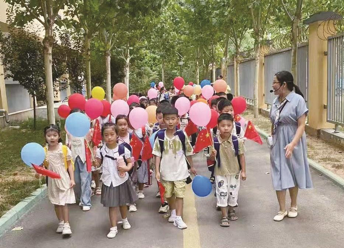 晨光微曦,临漳县第六小学的领导和老师们早早在校门口等候,用亲切的笑脸和温暖的祝福迎接一年级学生们的到来。
