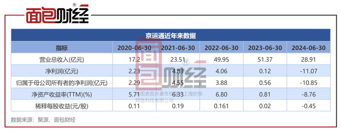 【面包财经】京运通2024年中报:总营收28.91亿元,同比下降43.73%