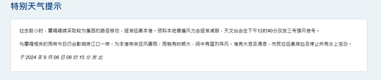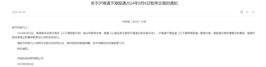 同期上交所和深交所发布公告称,2024年9月6日,港交所因台风暂停交易,港股通暂停交易。