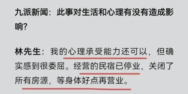 由于这件事情,林先生不仅自费在医院看病,自己经营的民宿也已经停业关闭了。