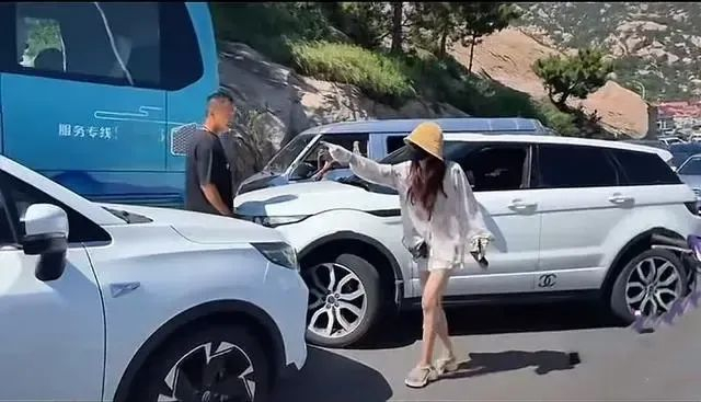 王女士不仅和疏导人员发生争执,还用手推对方,后来在倒车的时候和前方的大巴车发生了剐蹭。