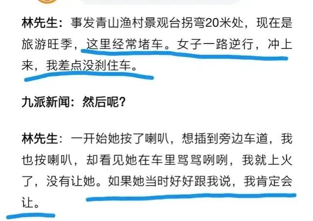 林先生也透露了事发时的情况,他表示如果逆行的王女士当时好好跟他说,他肯定会让一让对方的。